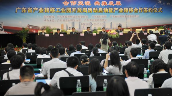 为增进社会各界对产业转移工作和省产业转移工业园的了解,推动省产业转移工业园开发建设和招商引资工作,广东省经济和信息化委、财政厅、外经贸厅将于9月16日-20日期间共同举办广东省产业转移工业园开放周活动。9月16日,广东省产业转移工业园开放周活动启动暨产业转移合作签约仪式在琶州国际会展中心隆重举行,中共广东省委常委、副省长肖志恒同志出席启动仪式并致辞,副省长刘昆主持仪式,省政协副主席温思美,省人大财经委副主任委员叶耀,省政府副秘书长杨绍森、刘晓捷,省政协副秘书长黄庆勇,省经济和信息化委主任杨建初、副主任林位超,省外经贸厅厅长梁耀文,省财政厅副厅长沈梅红等领导同志出席了启动仪式。肖志恒、刘昆、温思美共同为开放周按下了启动键,宣布广东省产业转移工业园开放周活动启动。启动仪式上,广东省经济和信息化委与中国工商银行广东省分行、国家开发银行广东省分行、中国邮政储蓄银行广东省分行、广东省中小企业信用再担保公司、广东省现代信息服务业研究所、广东省广咨国际工程投资顾问有限公司分别签署了产业转移合作协议。