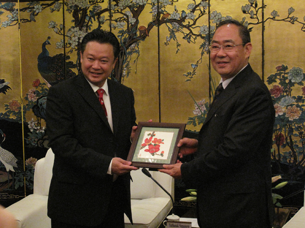 2011年5月10日上午,中博会组委会副主任兼执行主任、广东省人民政府副省长佟星先生会见了泰国工业部代表团——泰国中小企业促进署署长育塔萨·素帕颂先生一行。