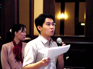 新闻发布会由首届中博会组委会秘书处宣传组组长、广东省委宣传部副部长、广东省政府新闻办主任李守进主持,首届中博会组委会秘书长广东省政府副秘书长徐尚武向新闻媒体发布新闻。在主席台上就坐的领导还有:首届中博会组委会秘书处成员、国家工商行政管理总局个体经营经济监管司调研员王黎明,首届中博会组委会副秘书长、广东省经贸委副主任、广东省中小企业局局长刘焕泉。国家及地方、港澳新闻媒体记者约一百多人参加了会议。