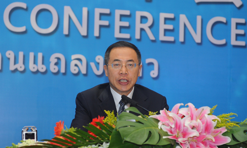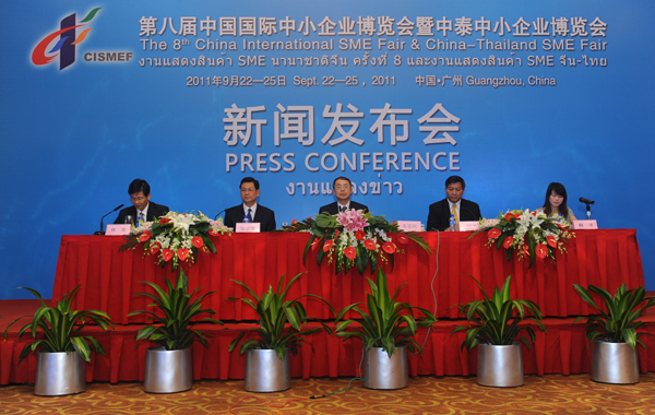 830日上午,第八届中国国际中小企业博览会暨中泰中小企业博览会新闻发布会在北京国际饭店召开。中博会组委会副主任、工业和信息化部总工程师朱宏任,中博会组委会副主任兼执行主任、广东省人民政府副省长陈云贤,泰国中小企业促进署外事局局长瓦赤拉·交科出席会议。会议由中博会组委会秘书长、广东省人民政府副秘书长林英主持。组委会副秘书长、工信部中小企业司司长郑昕,广东省筹办会办公室主任、广东省中小企业局局长张文献等有关人员,以及来自中央电视台、人民日报、经济日报等新闻媒体的80多名记者参加了新闻发布会。